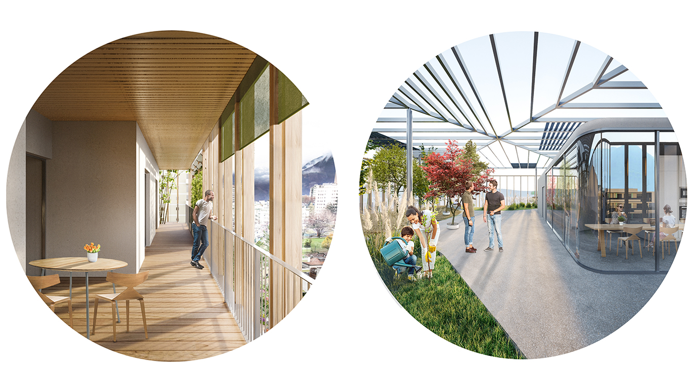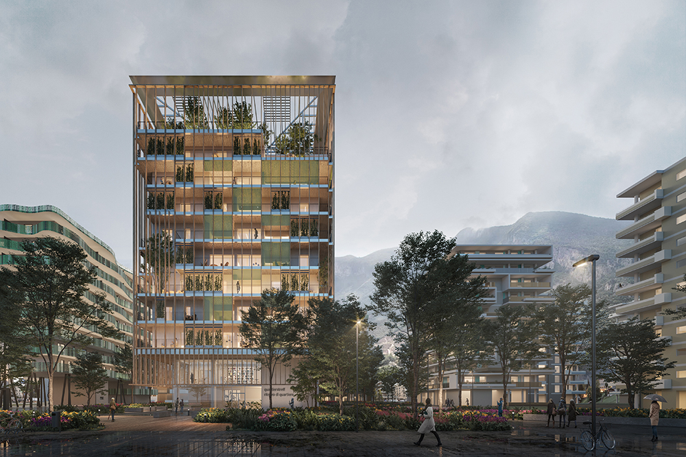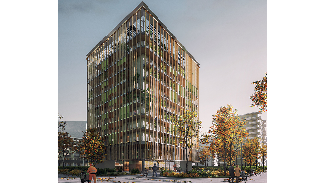 Il concorso bandito dall’IPES (Istituto per l’Edilizia Sociale dell’Alto Adige) prevede la progettazione di un edificio residenziale per 35 alloggi sostenibile, flessibile e in legno che, insieme alla piazza e al parco annessi, diventi un catalizzatore di interazione e condivisione sociale come un nuovo fulcro urbano del quartiere. L’intervento è stato pensato con una struttura in calcestruzzo armato su cui se ne innesta una in legno (CLT, Cross Laminated Timber). I piani terra e primo sono pensati per una permeabilità con il contesto non solo visiva, grazie alle pareti vetrate - ma anche nelle funzioni aperte al quartiere, come la biblioteca e le aree di incontro; gli appartamenti sono suddivisi in 6 tipologie differenti, così da rispondere alle diverse esigenze degli utenti.
