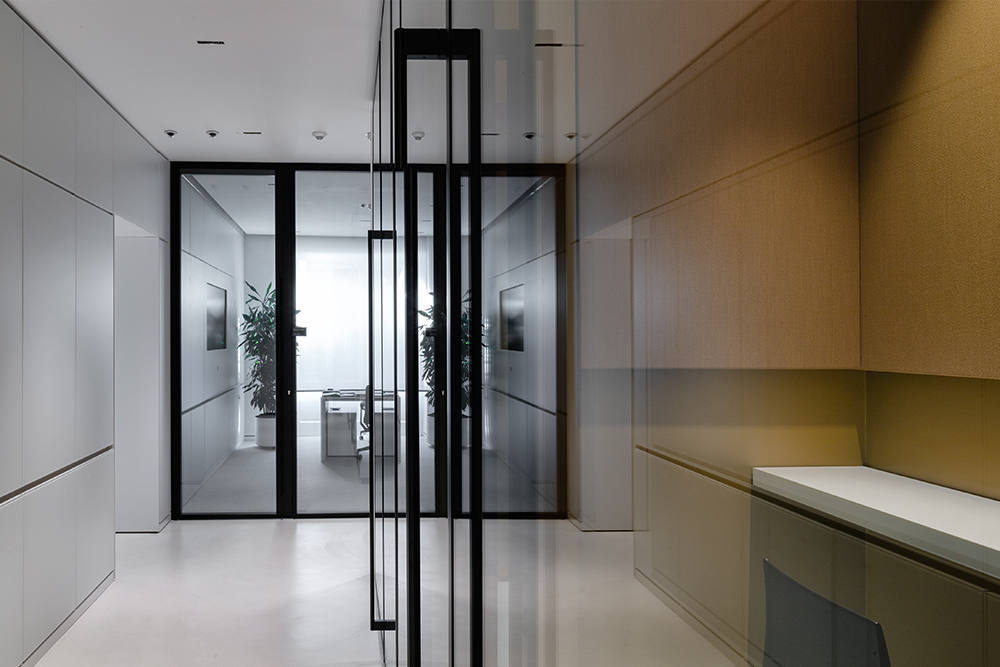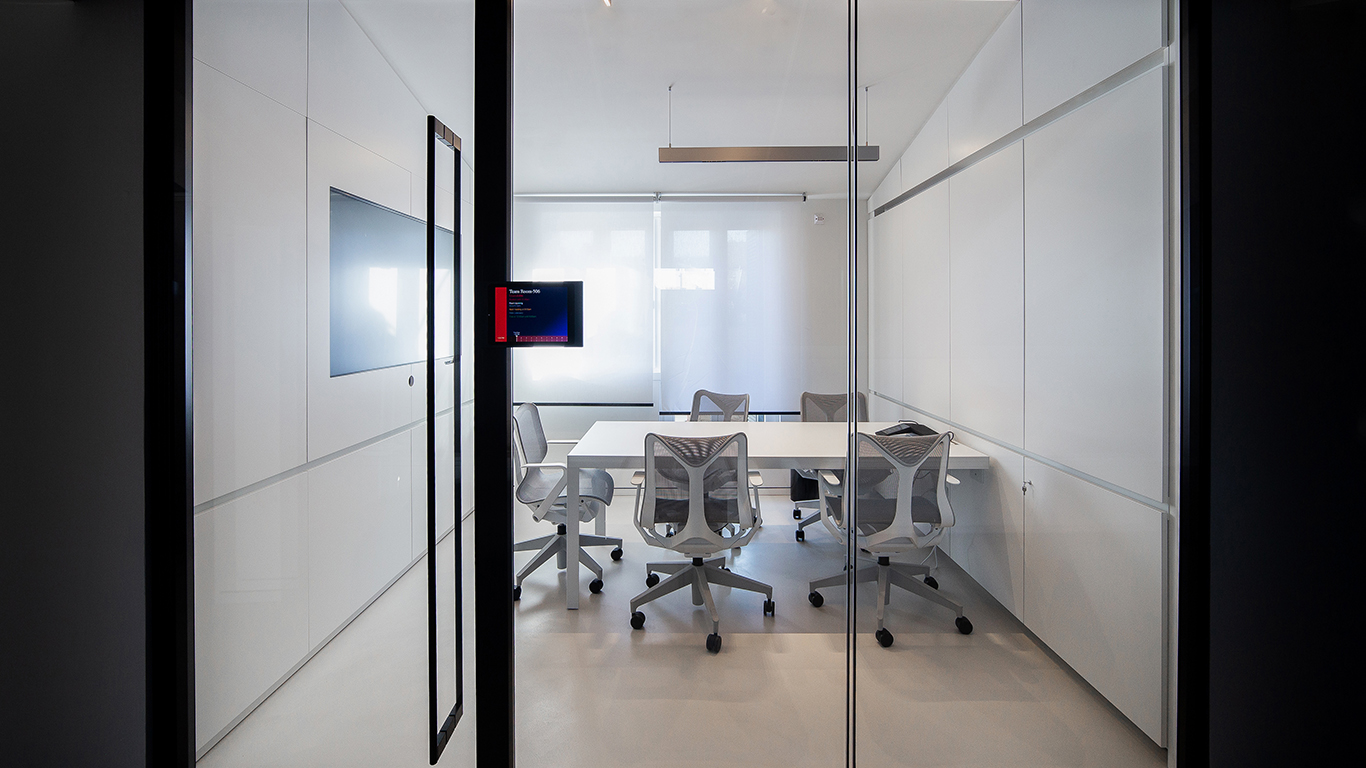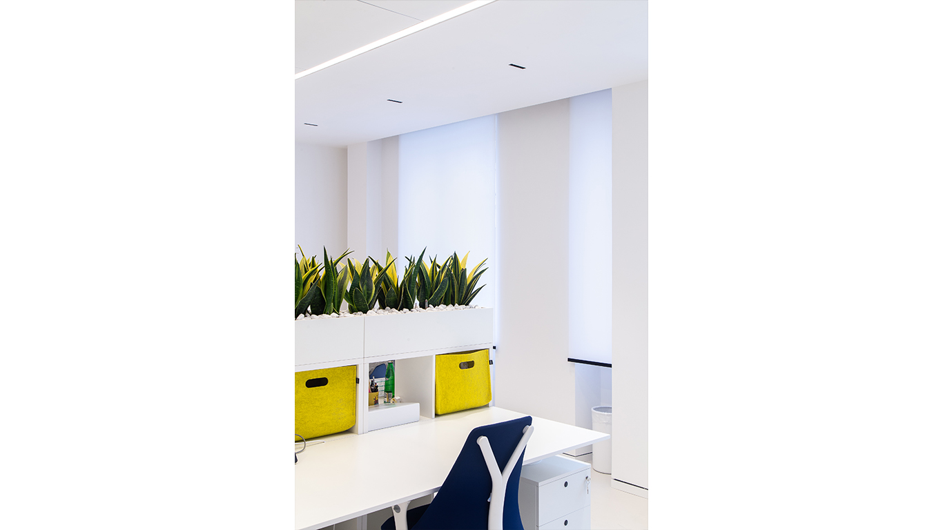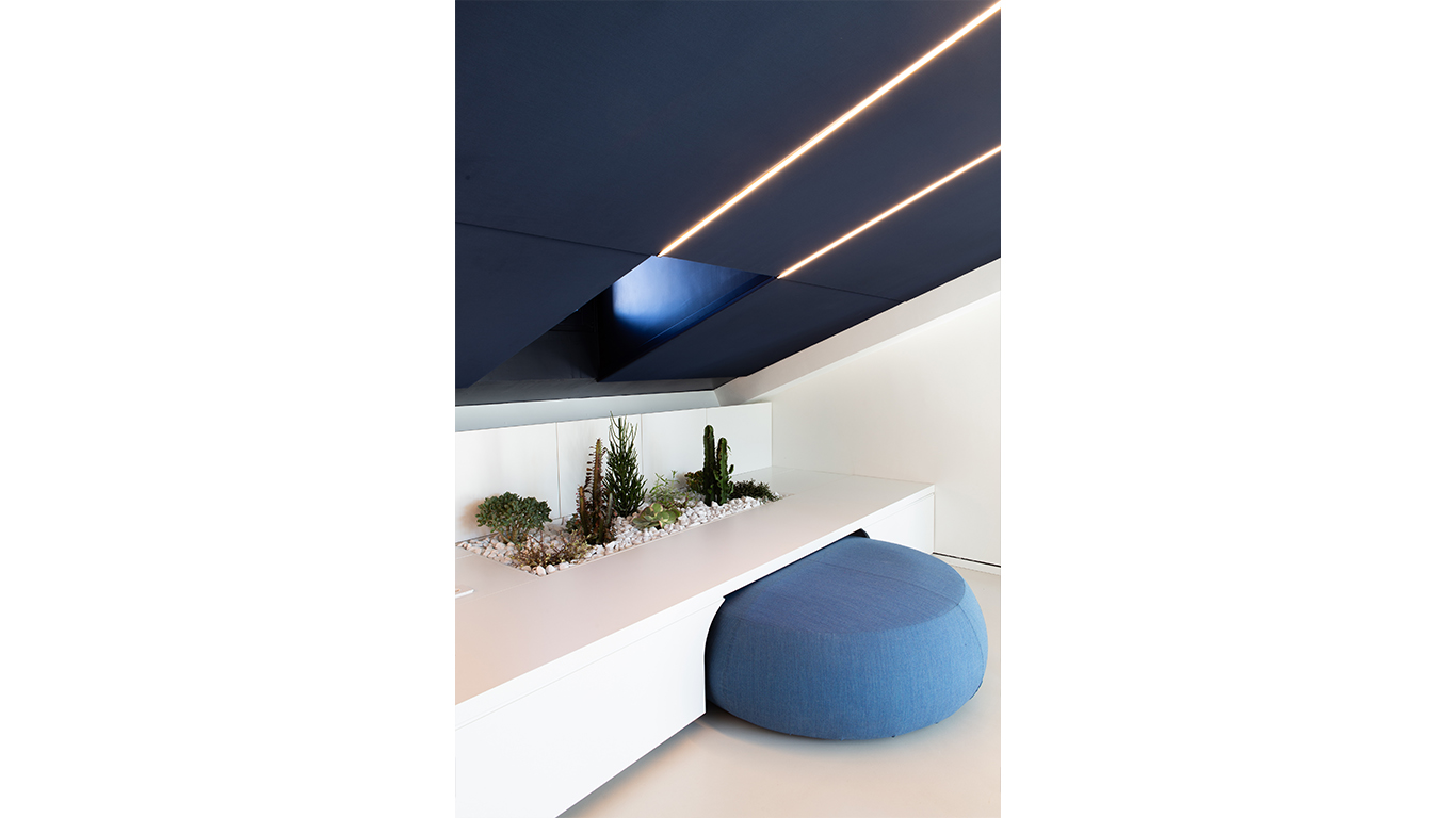 Il nero delle cornici di pareti e porte vetrate e dei corpi illuminanti, in forte contrasto con il bianco delle pareti e dei soffitti, inoltre, richiama le tessere bianche e nere dei mosaici di epoca romana. Anche il ricorso alla vegetazione di progetto è un richiamo a Roma e ai suoi parchi e attraverso il design studiato, mai casuale, diventa filo conduttore dell’esperienza dello spazio. Il colore blu, colore del brand, infine, connota gli spazi principali e quelli relax. La sede occupa il quarto e il quinto piano dello storico Palazzo Valadier (affacciato su Piazza del Popolo e sui giardini del Pincio), realizzato dall’architetto Giuseppe Valadier nella prima metà del 1800 e vincolato presso la Soprintendenza Speciale Archeologica Belle Arti e Paesaggio di Roma. Lo spazio interno, anch’esso vincolato, si estende su circa 1200 mq ed era originariamente composto da una serie di piccoli ambienti collegati da corridoi con poca luce naturale e di scarsa qualità architettonica. Le sale break e lounge ricorrono in diverse parti dell’ufficio in modo da stimolare e rendere sempre disponibili le occasioni di confronto, collaborazione e socialità tra i consulenti dell’azienda.