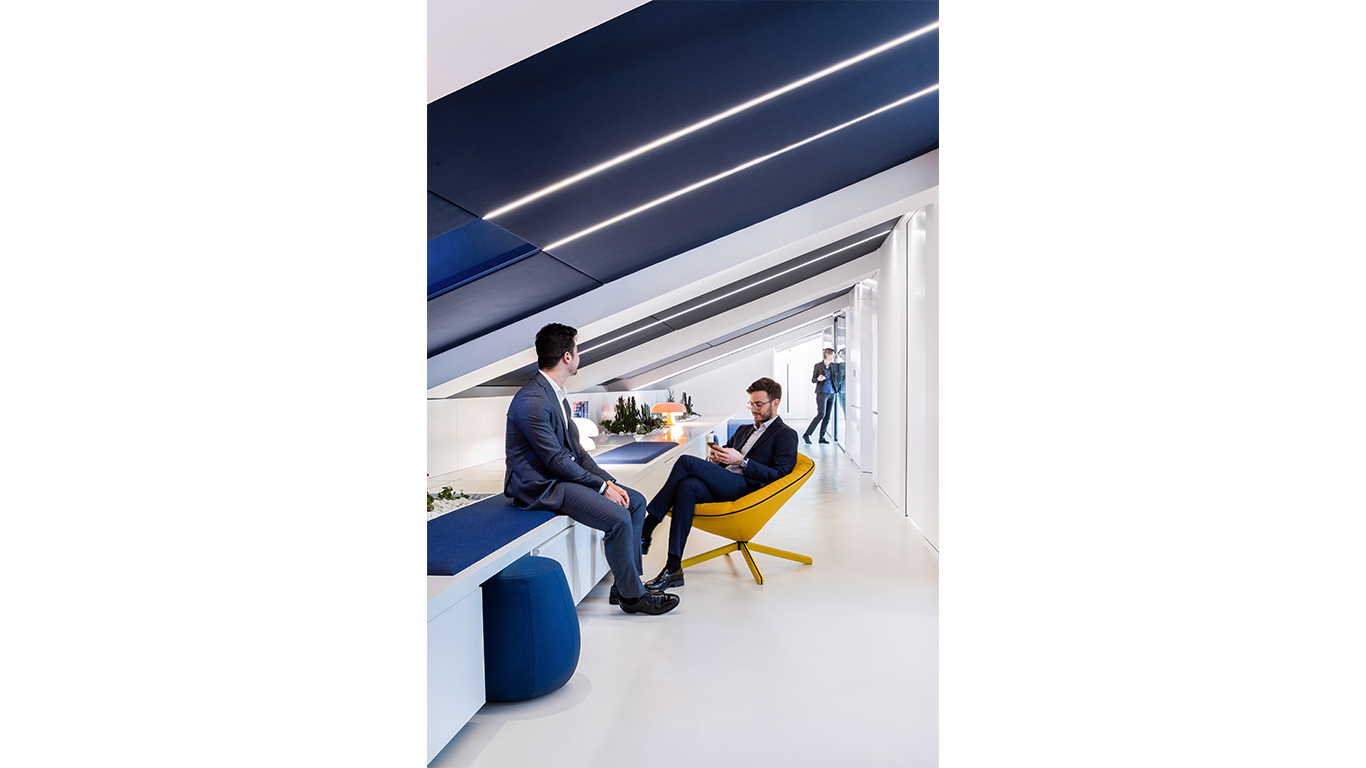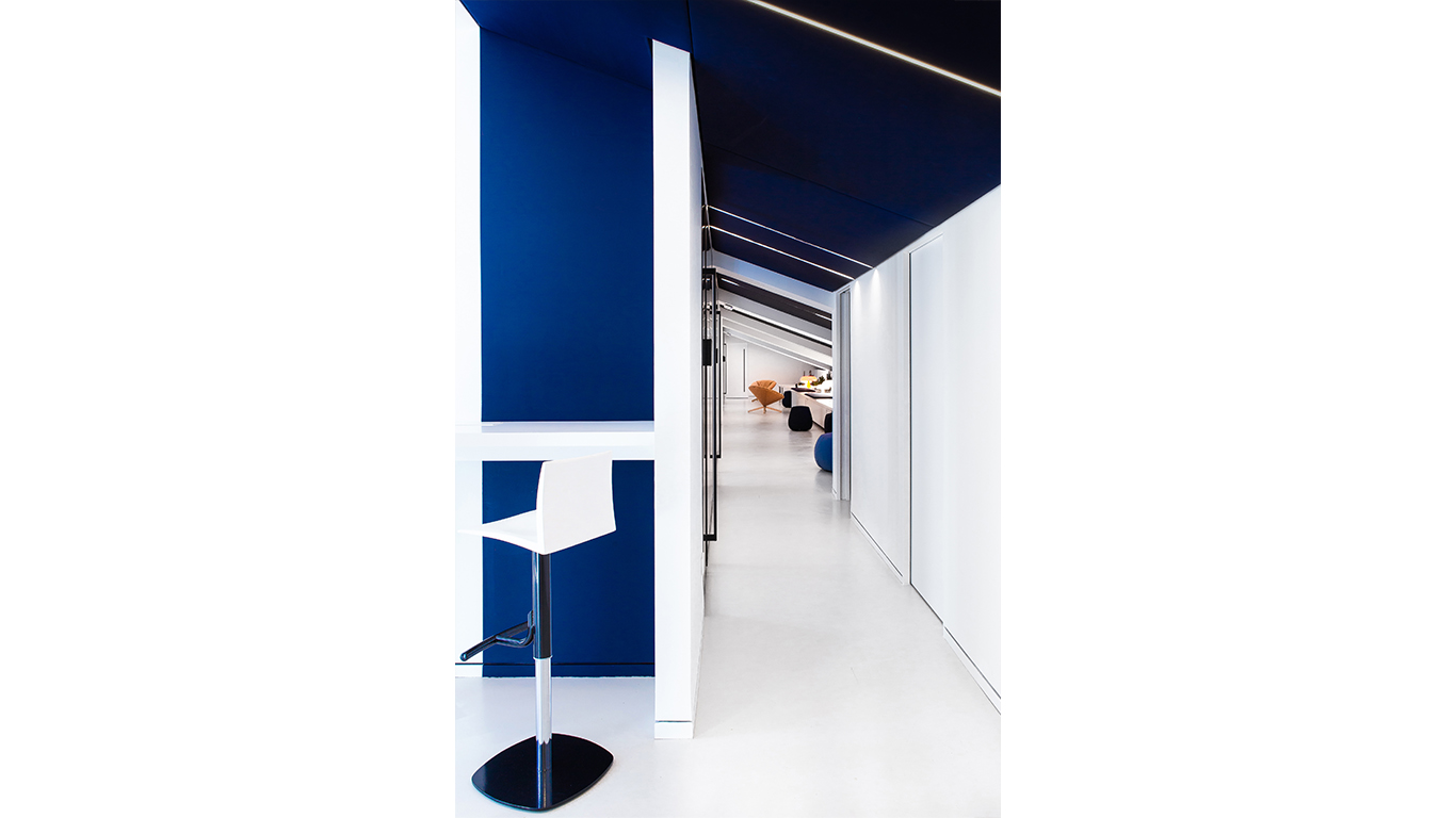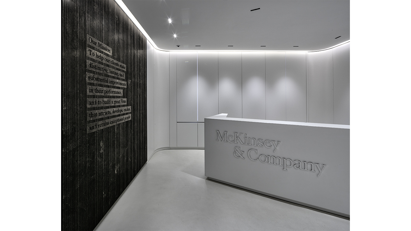 Una riflessione approfondita sull’estetica e le funzioni degli uffici contemporanei è alla base del progetto della sede romana di McKinsey & Company, società internazionale di consulenza strategico-manageriale per il supporto di aziende, governi, istituzioni e organizzazioni no-profit. Il nuovo ufficio doveva esprimere i valori e seguire le linee guida internazionali della società, che hanno portato a un interior design minimale, all’utilizzo di pochi colori, tra cui il blu che caratterizza la brand identity aziendale, e alla creazione di spazi dedicati alle attività di rappresentanza, di collaborazione e di socialità, oltre che dell’operatività individuale. Le postazioni di lavoro sono, per esempio, concepite in modo libero: i consulenti possono prenotare quelle che preferiscono e passare in maniera fluida dai classici spazi di lavoro scrivania-seduta alle numerose aree lounge, per un lavoro meno formale. La scelta dei colori e dei materiali tiene conto dell’identità visiva del brand McKinsey & Company, unitamente al contesto storico e geografico del luogo. Il richiamo a Roma e alla sua architettura viene sottolineato da precise scelte: il pavimento continuo in micro-cemento beige è ispirato alle grandi lastre di travertino di epoca classica; in tutti i corridoi principali, è stata utilizzata per i rivestimenti una pietra chiara, lavorata con scanalature e leggeri intagli che ricordano il sapiente lavoro di decoro eseguito sulle colonne romane.