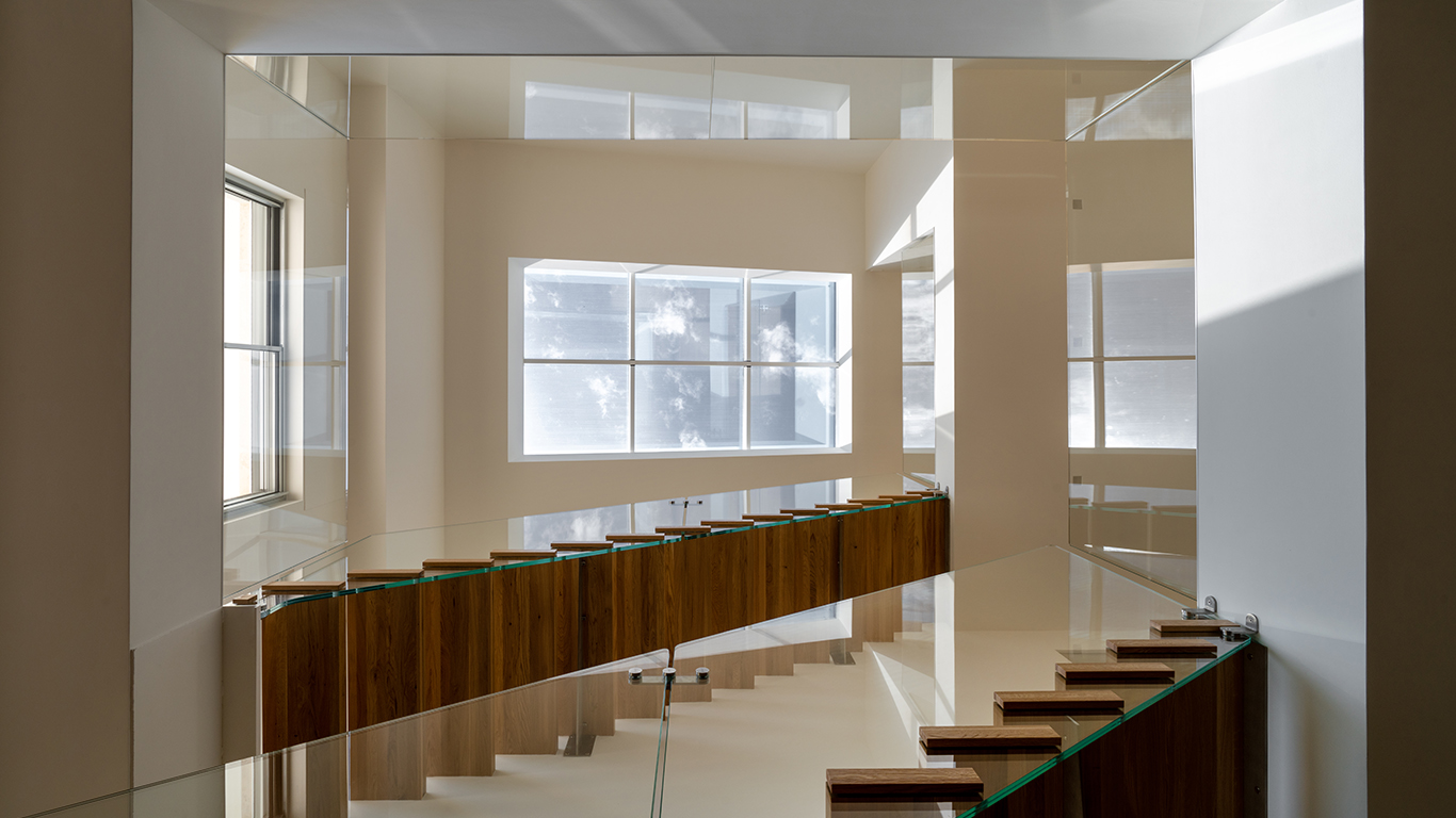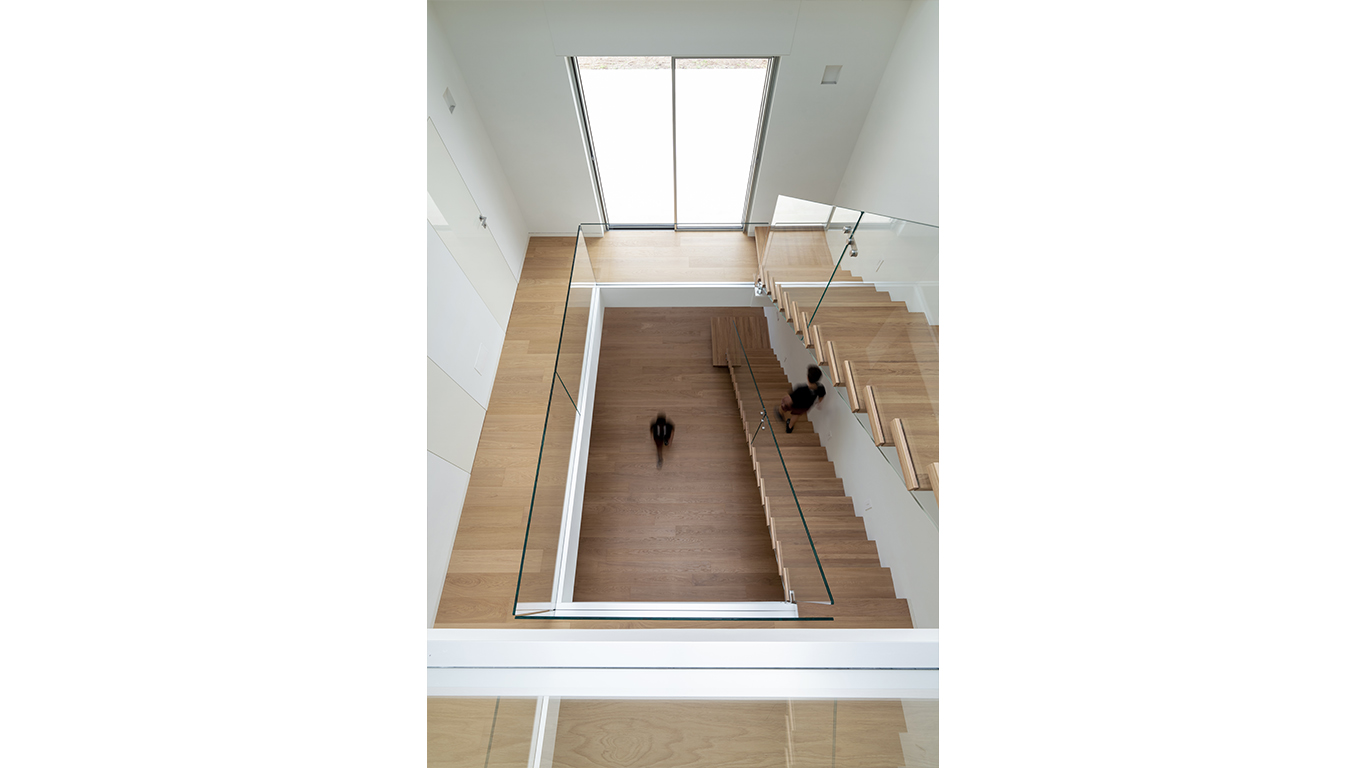 Attorno alla corte interna, si sviluppano le camere da letto e relativi servizi e la cabina armadio. Il camino si lega all’esterno con una lunga seduta divenendo uno dei punti più accoglienti della casa. La zona pranzo media il passaggio fra la cucina, visibile da ogni prospettiva, e le aree di distribuzione per rendere l’idea di continuità assoluta tra ogni ambiente. L’architettura, oltre che nel suo aspetto estetico, è stata ragionata per rispondere alle più moderne esigenze di risparmio energetico e di qualità abitativa.