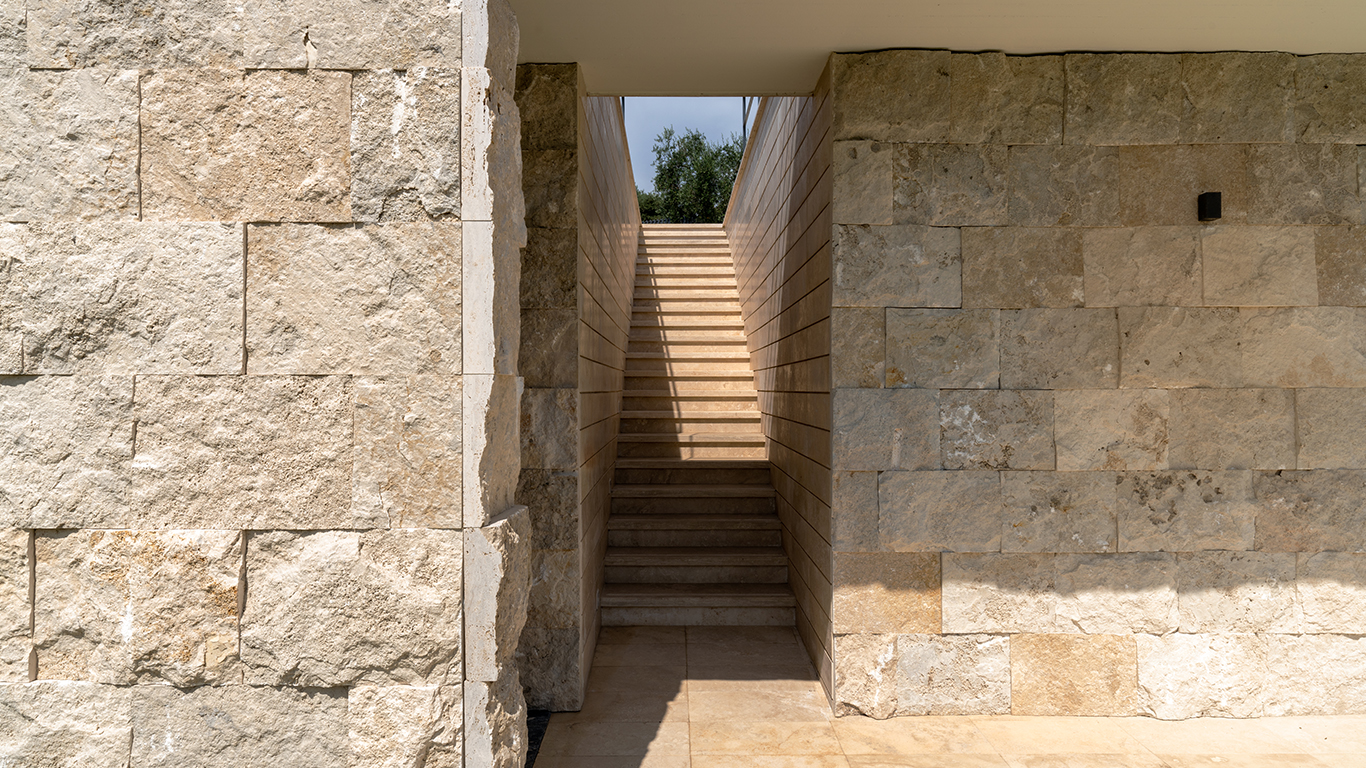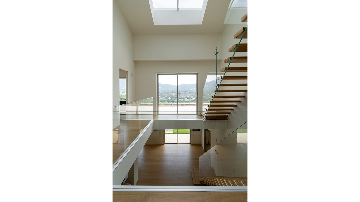 A Villa Ecrù, ad accoglierci nell’ambiente architettonico è sempre la natura, che raggiunge tutta l’altezza della casa con la luce, opportunamente filtrata secondo un sistema di schermature brise soleil pensate per le diverse stagioni. Di fronte, si apre il panorama, annunciato dall’ampia doppia altezza che accompagna la visuale fuori dalle mura, lasciando che l’architettura faccia da cornice allo splendido contesto in cui sorge la villa.